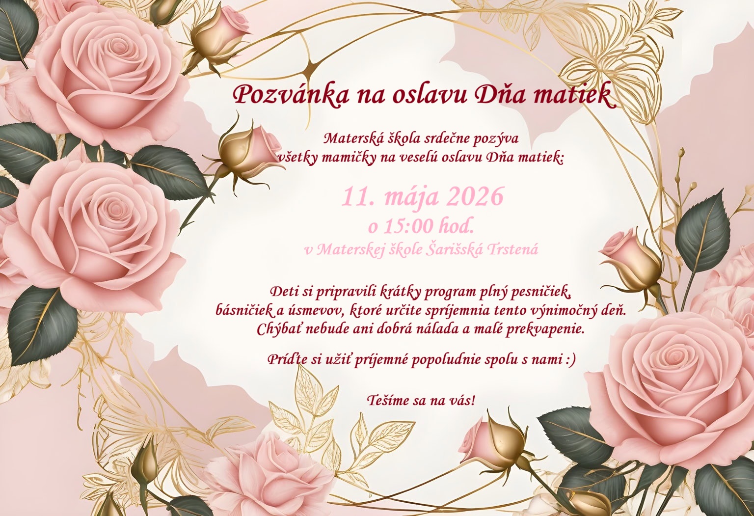 Pozvánka k oslave Dňa matiek